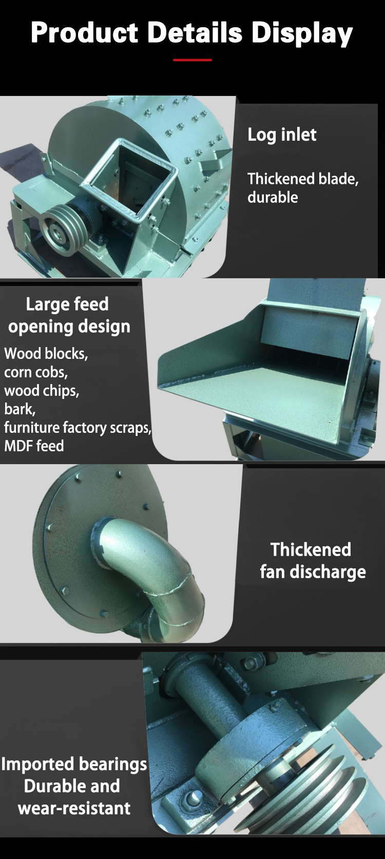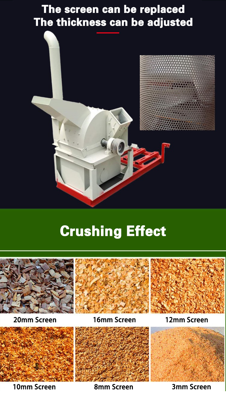 It is a forestry processing equipment that processes wood materials such as wood and branches into sawdust and sawdust. Widely used in power plants, paper mills, charcoal production lines and other industries. The machine is mainly composed of a cutter head, a crushing chamber and a screen. The fineness of the sawdust can be adjusted and adjusted by changing the screen.