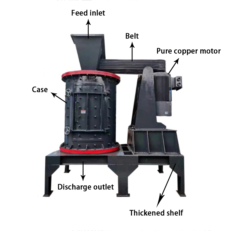 Materials from the upper part of the machine fall vertically into the high-speed rotating impeller, under the action of high-speed centrifugal force, and the other part of the umbrella form of shunting in the impeller around the material to produce high-speed impact and crushing, the material in the mutual impact, and will be in the impeller and the shell of the material between the formation of vortex mutual impact many times and crushed, from the lower through the discharge, the whole system to form a closed-circuit cycle, controlled by the screening equipment to reach the required size of finished products. The whole system forms a closed-circuit cycle, which is controlled by the screening equipment to reach the required particle size.